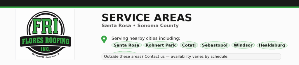 We serve Santa Rosa, CA and nearby cities across Sonoma County. If you’re outside these areas, contact us—availability varies by schedule.